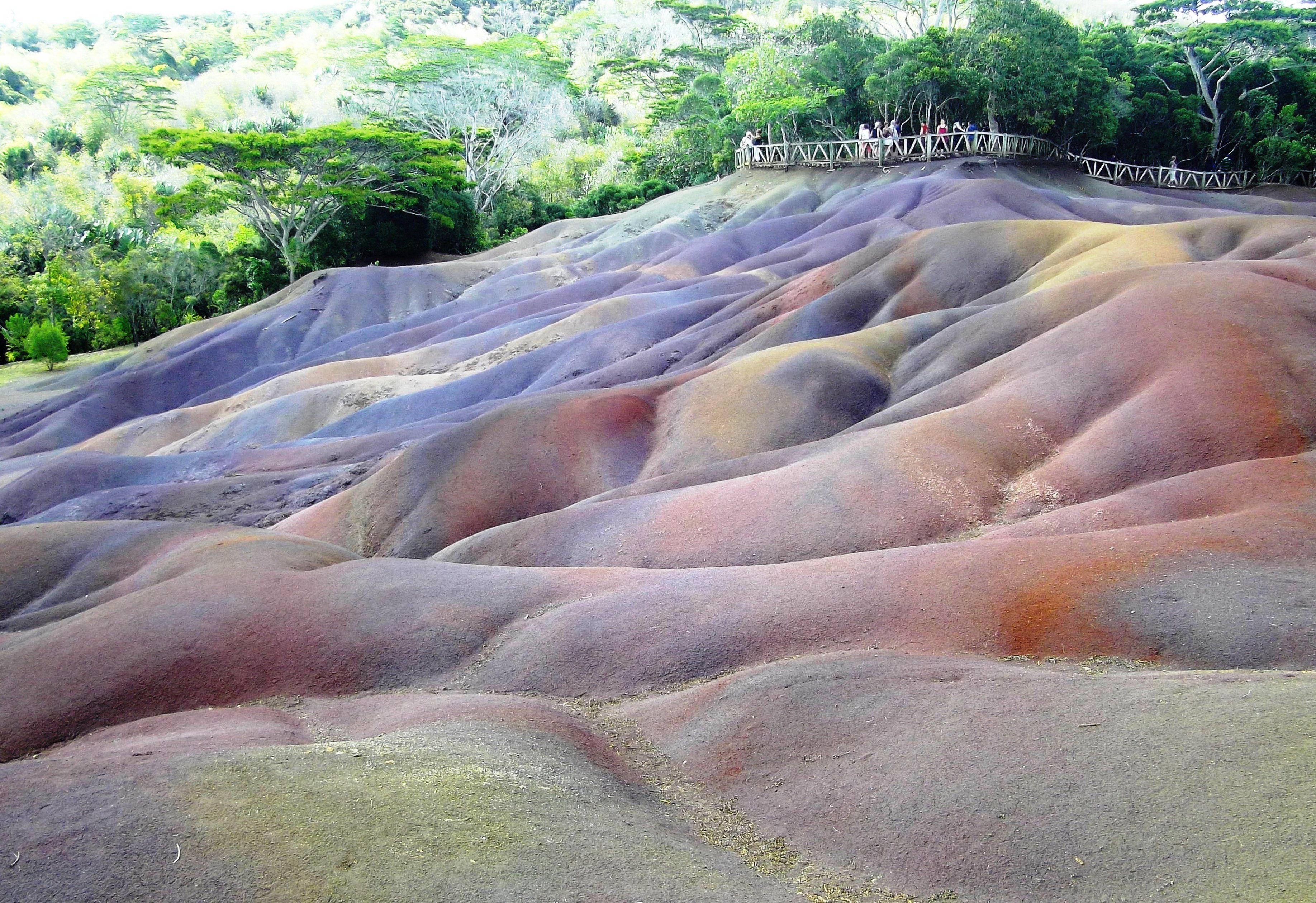 Le Jardin des sables multicolores... souvenir des volcans.Les touristes avaient pris l'habitude d'emporter des échantillons alors c'est tout cloturé pendant qu'il reste encore du sable......